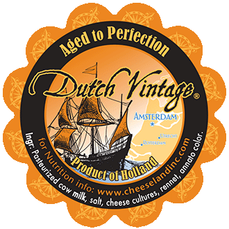 Indulge your palate with this exquisite cheese experience from Holland. Dutch Vintage® has the deep, rich, buttery flavor of a classically well aged Gouda, a favorite of cheese connoisseurs. This cheese cuts with ease and grates well. Made with milk from free-range, grass-pastured Holsteins and then carefully aged, it can be the featured as the centerpiece of an hors d’oeuvre plate, melted in your favorite gourmet recipes or served with seasonal fruit on dessert platter. It pairs well with both red, white or dessert wines.