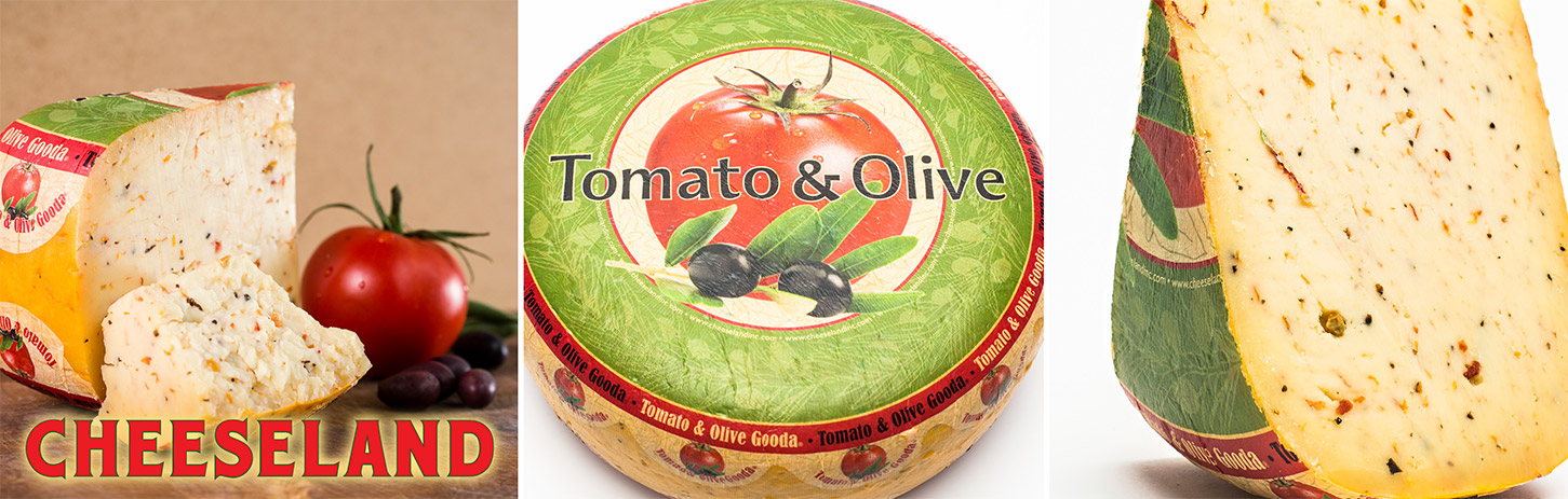 Mild, creamy smooth traditional Dutch cheese, with tomato & black olives added for flavor and texture. The delighful flavor of the fresh red tomaotos and italian black olives, add a pleasant kick to this mild cheese. A perfect compliment for salads and sandwiches, ideal for melting and great by itself as a snack.